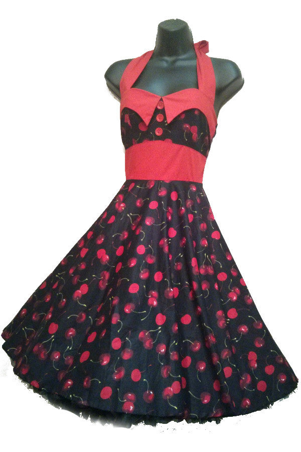 Black & Red Cherry Print Ashley Dress