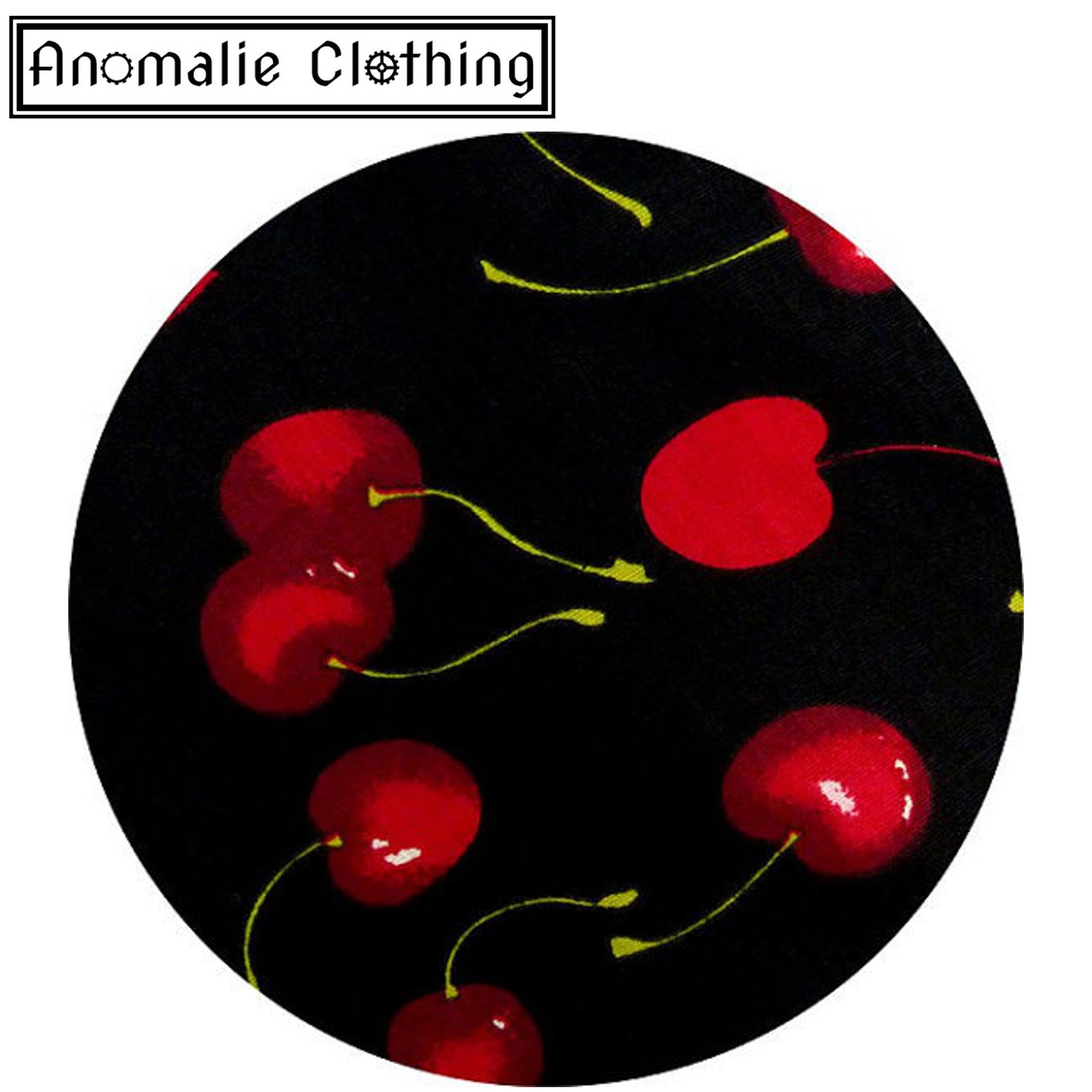 - a retro inspired cherry print pattern on a black background,