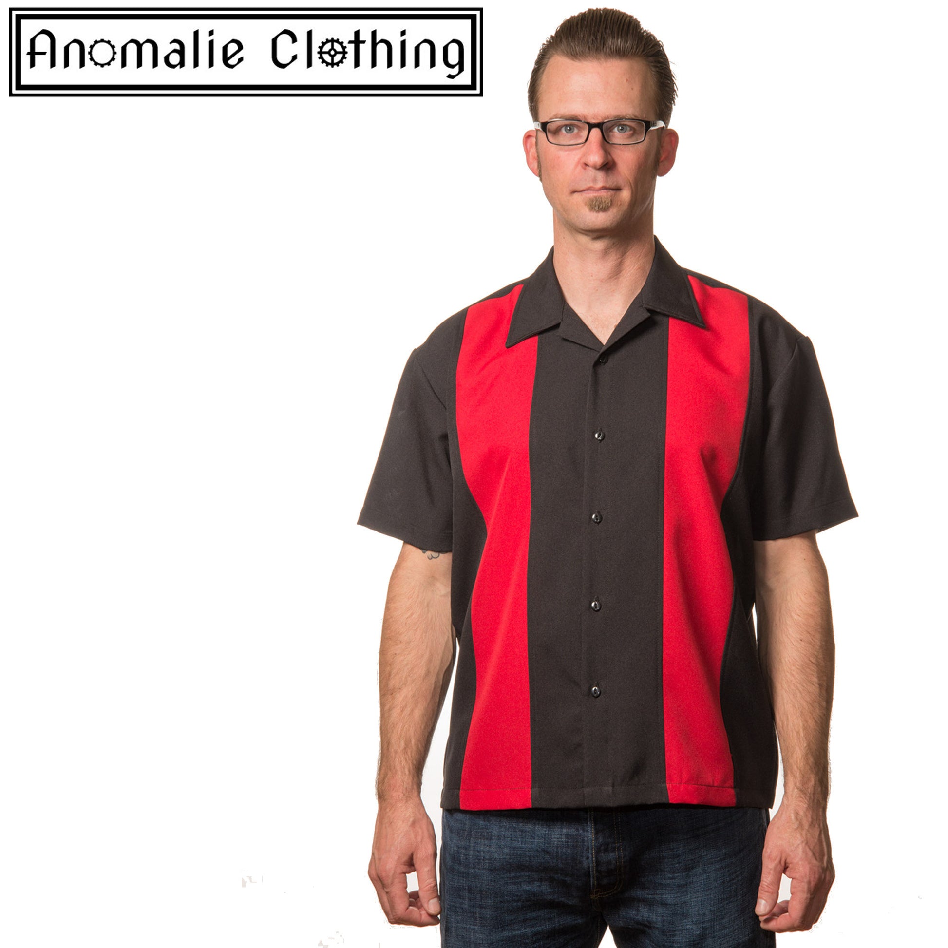 Black & Red Mini Panel Button Up Mens Shirt