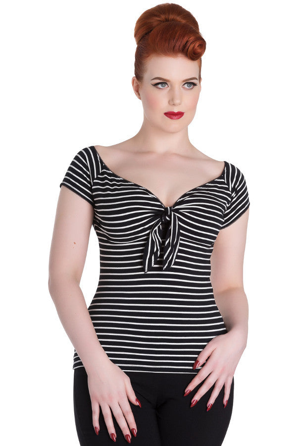- Team this top with a navy blue wiggle skirt or capris, for a vintage nautical look.