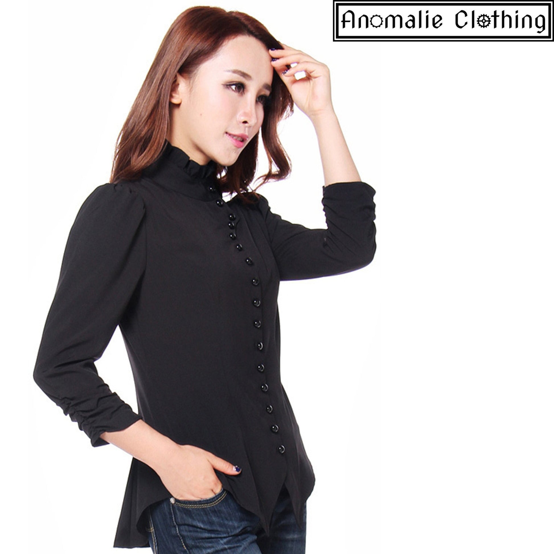 This elegant Steampunk inspired blouse from Chic Star features:- a high, ruffled Victorian style neckline,