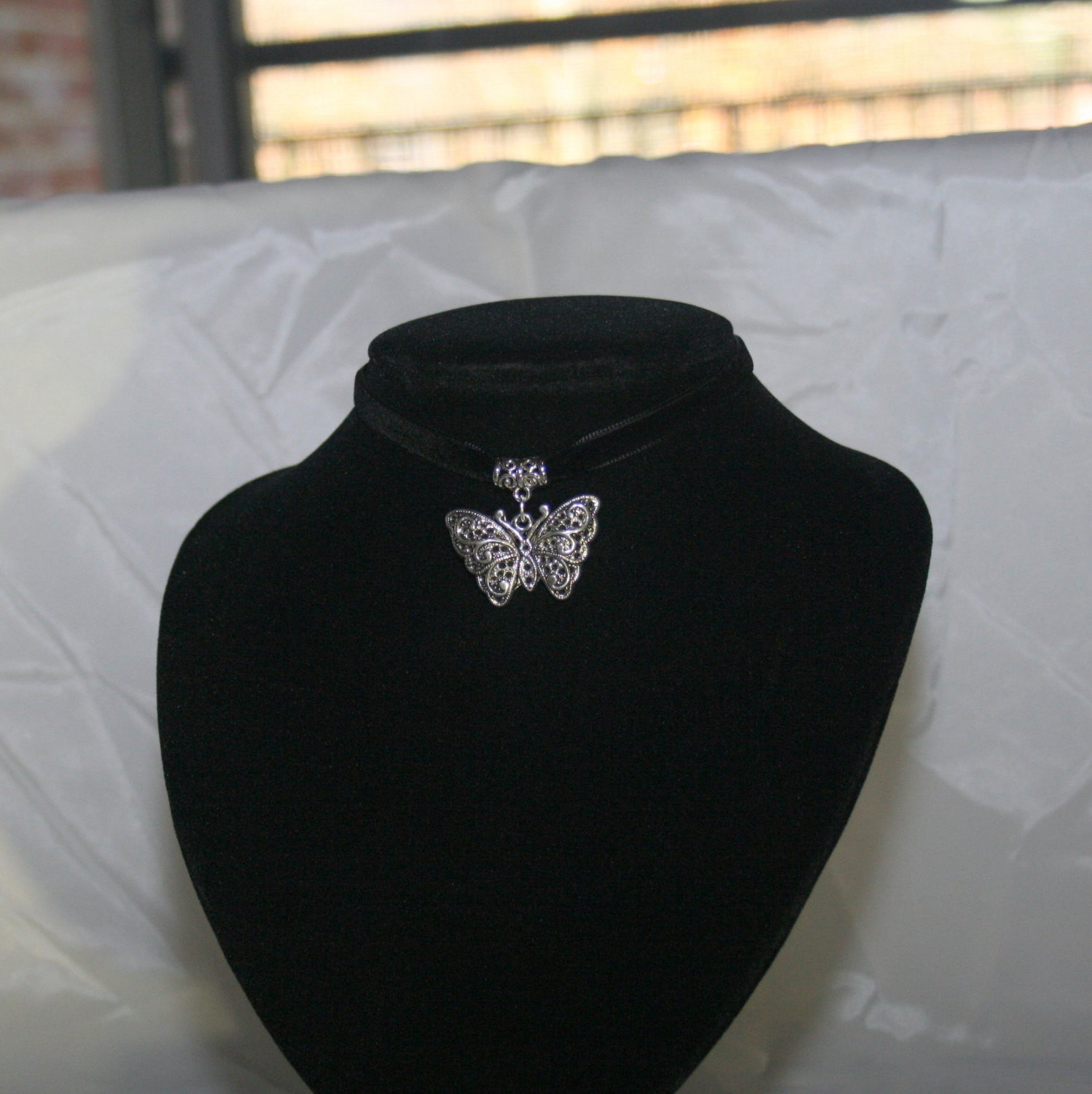 Silver Filigree Butterfly Pendant on Burgundy Velvet Choker