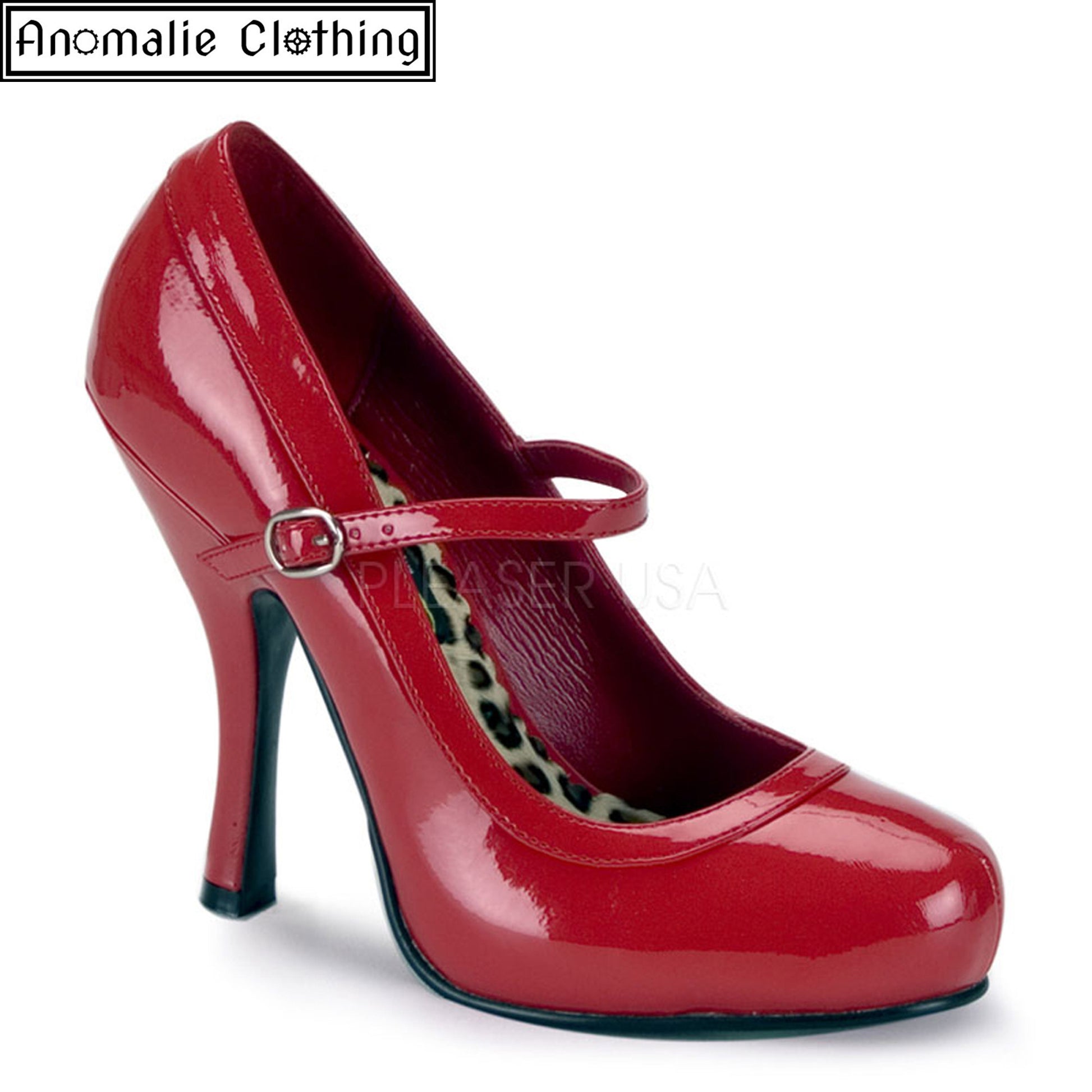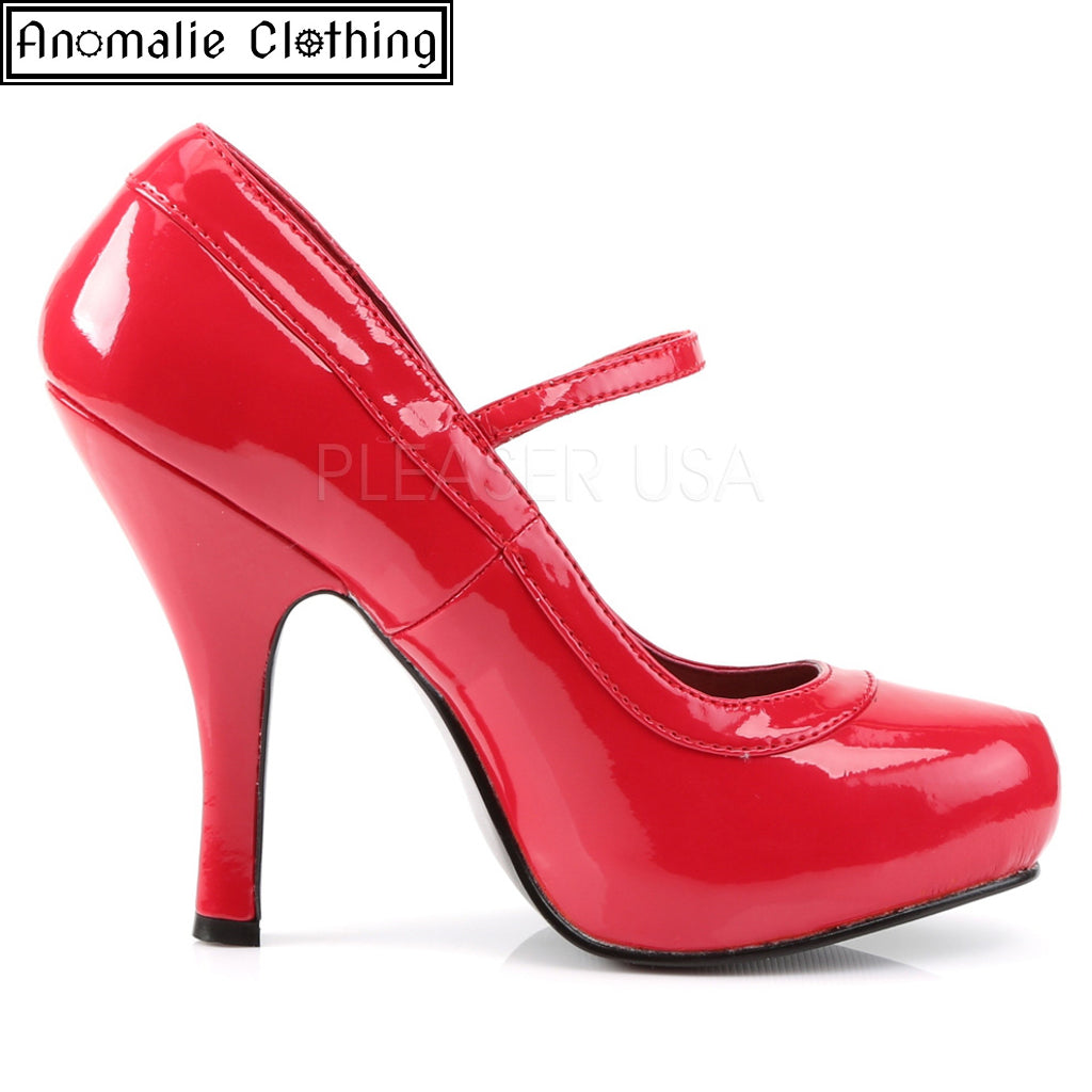 Pretty Mary Jane Pumps in Red Patent Faux Leather