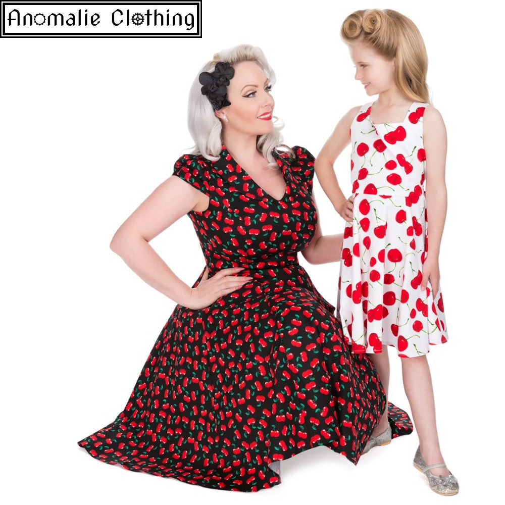 White Cherry Print Kids Swing Dress - 1 Size Age 3-4 Left!