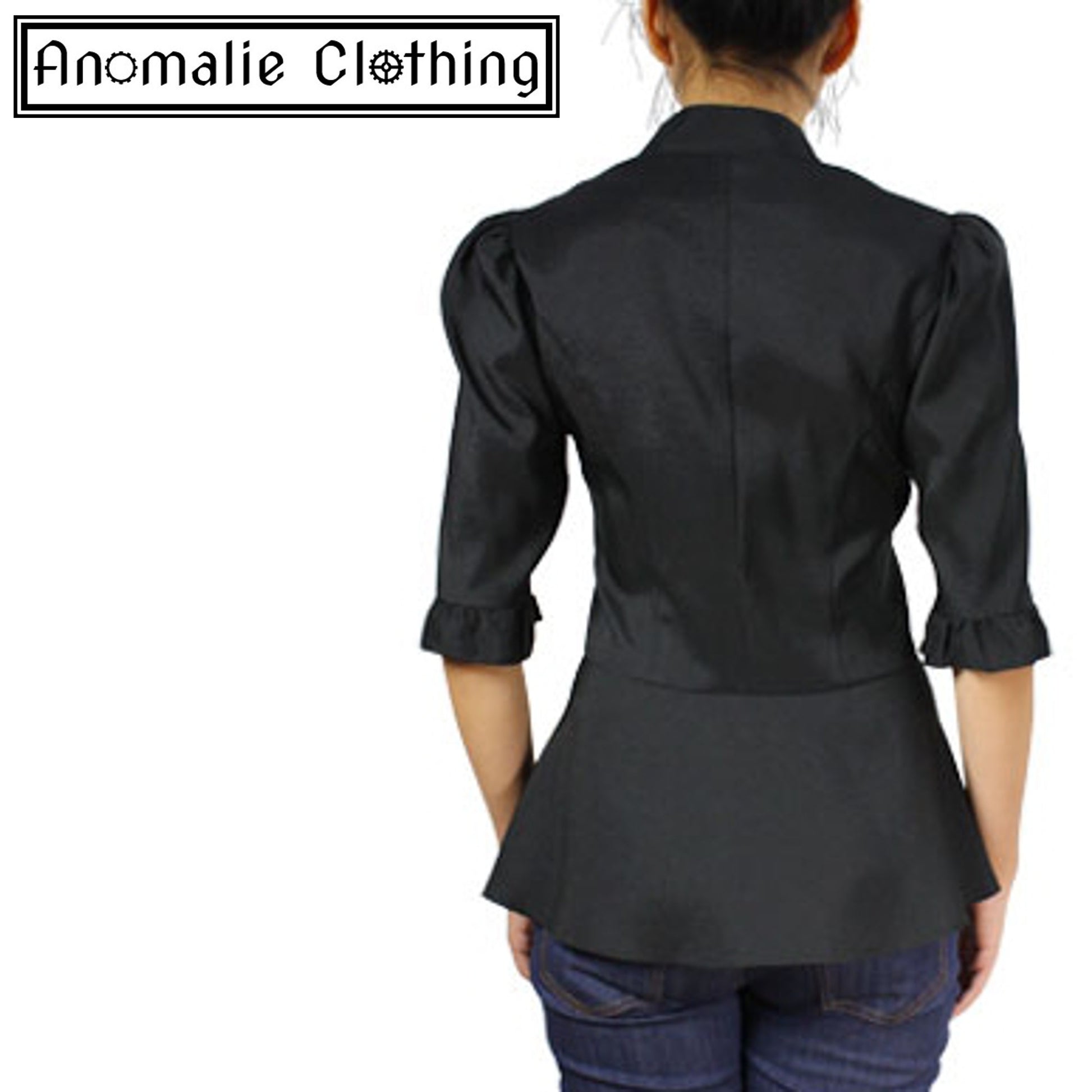 - delicate ruffles around shoulders and cuffs;