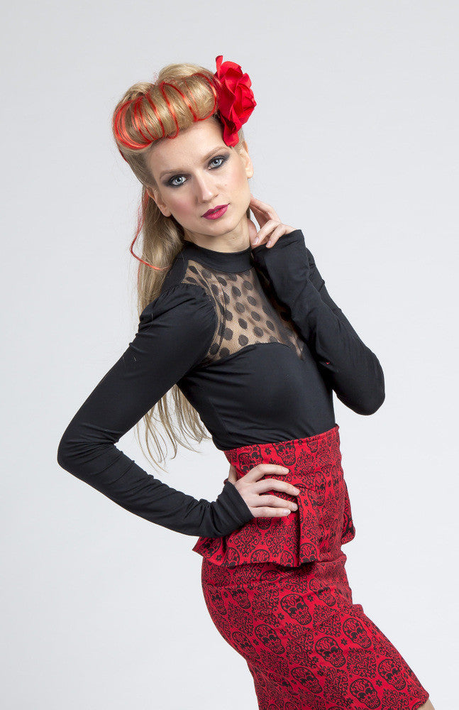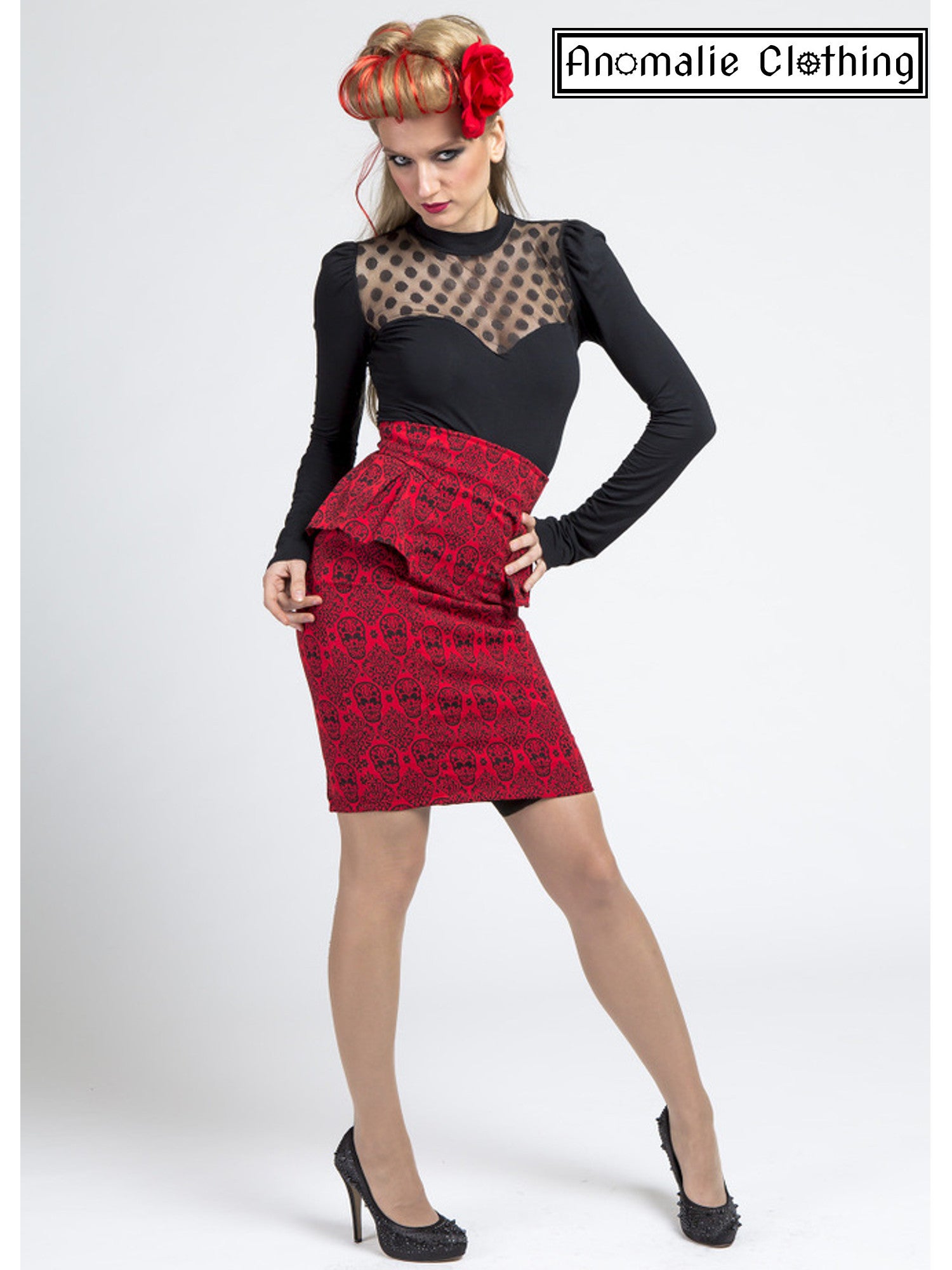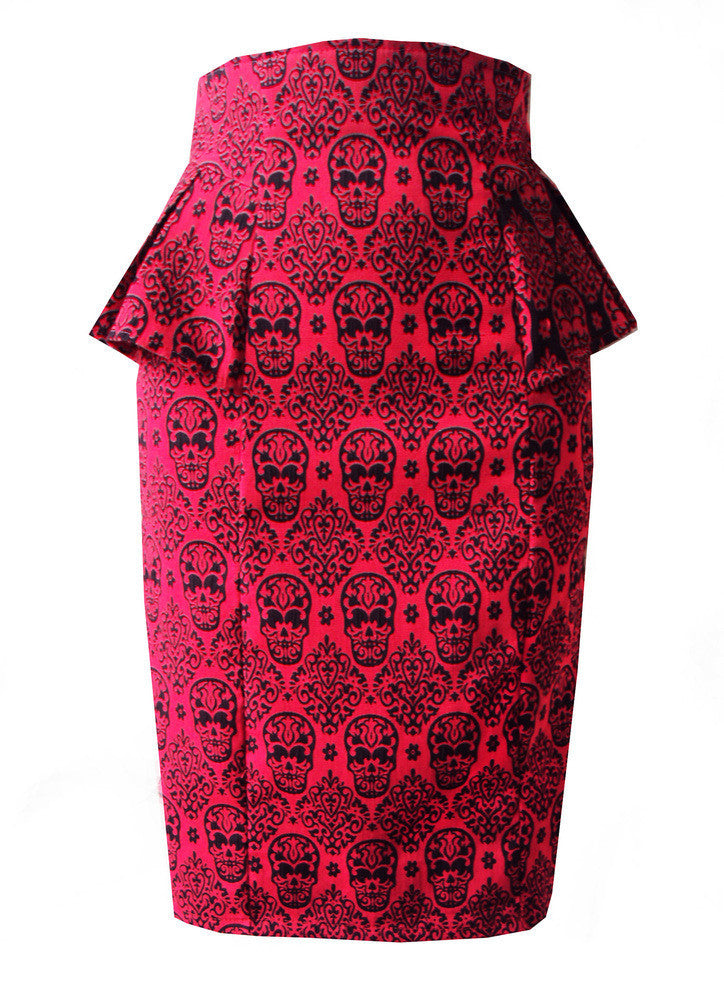 Red Sugar Skull Peplum Skirt - One Size 8 Left!